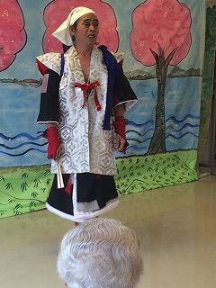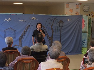 6月25日、介護付有料老人ホーム「ライフビュー」にて、 「名場面集」の公演を行いました。 当日はライフビューのスタッフの方々や入所者の皆さんのあたたかいお出迎いや、公演中も各演目を盛り上げて頂き、大変感謝いたしております。 施設長の原様も飛び入りで、日向ひょっとこ踊りに 参加して頂き、劇団の皆も何時もより、張り切って演じる事が出来、大変楽しい一時を過ごす事が出来ました。 又、公演後感謝状まで頂きまして、恐縮しております。 本当に有難うございました。 |