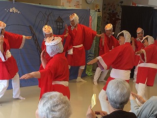 ![]() 日向ひょっとこ踊り 施設長の原様も一緒に出演して頂きました。 |