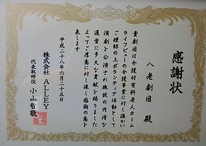 ![]() 公演後 「ライフビュー」より感謝状を頂きました。 |
