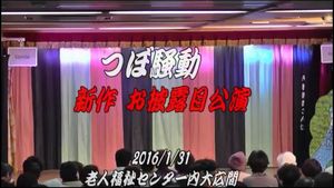 | 平成28年1月31日 八尾市老人福祉センターにて、 八老劇団の新作「つぼ騒動」の公演を行いました。 この演目は、主宰 浜田澄子の脚本、演出共にオリジナルであり、 去年の春から練習をおこない、8月の暑い中 小道具やかつら、舞台背景等すべて手作りで、今回の公演を目標に劇団員全員の協力に よって、実現致しました。 当日は、朝の部と昼の部の2回公演で行いましたが、 多くの方が観覧に来てくださり、大変感謝致しております。 又、受付等のお手伝いもして下さり、有難う御座いました。 |